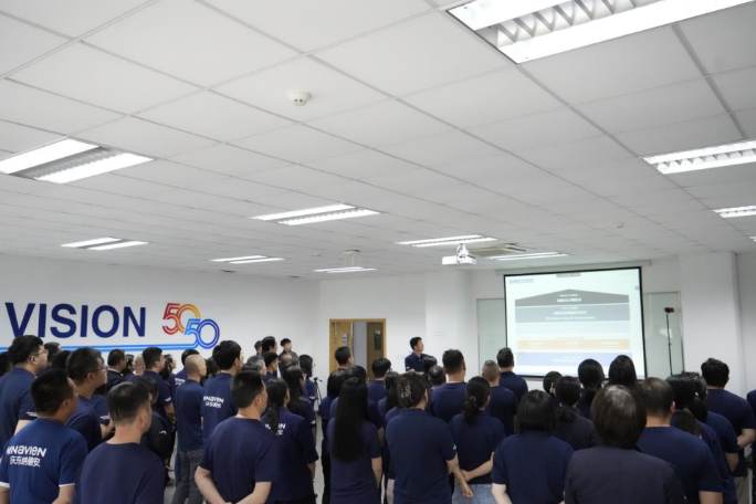 作为庆东纳碧安的子公司之一,中国法人也积极参与了此次庆祝活动。全体员工齐聚一堂,共同聆听和学习了公司未来的发展战略。活动伊始,罗镕大副总裁详细阐述了Vision50-50的战略方向,为公司未来的发展描绘了宏伟的蓝图。他的演讲充满了对未来的憧憬和信心,也激发了员工们对工作的热情和动力。