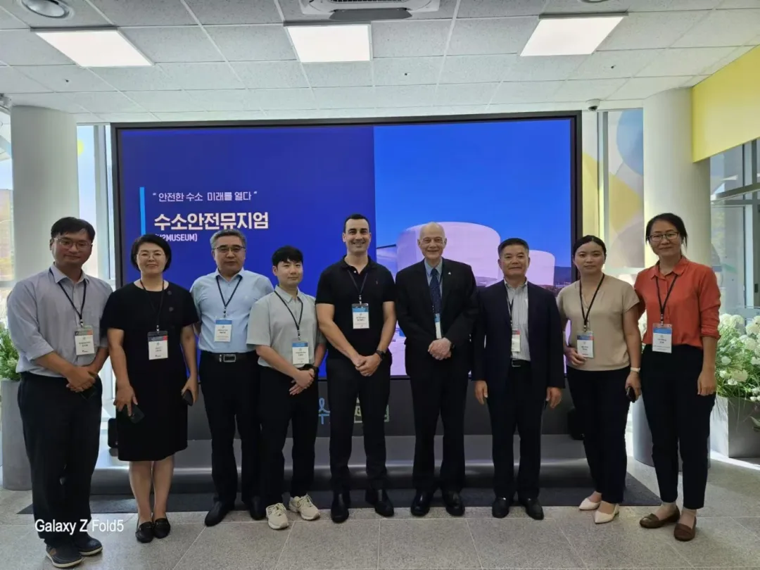 大会首日,参会代表前往位于阴城的韩国燃气安全公社(KGS)总部,参观了“氢能产品测试和评价中心”和“氢能安全展览馆”。KGS的专家详细介绍了韩国在氢能产品检测、评价领域的先进设备和方法,使与会者对氢能技术的应用和安全标准有了更深入的了解。