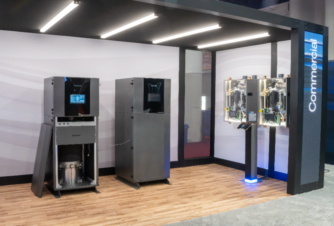 除混合动力产品外,庆东纳碧安(NAVIEN)在现场同步展示了面向商用与工程应用的核心机型——NFB700系列商用落地式全预混冷凝模块锅炉。该系列围绕北美市场对高效节能、稳定供热与工程适配的需求进行设计,兼顾运行效率与长期可靠性,可为商用场景提供更灵活的系统配置选择。